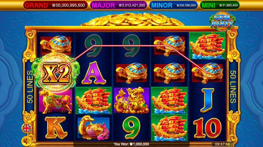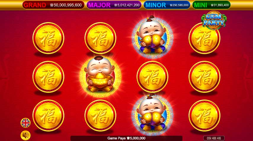 Celebrate every spin in Gem Party, where the excitement sparkles as bright as the prizes! This 50-payline slot brings the party with Free Games, a thrilling Jackpot Feature, and four progressive jackpots just waiting to light up your day. The gems are gleaming, the reels are rolling—are you ready to shine?